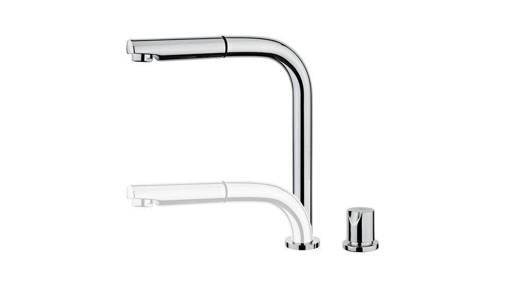 Кухненски смесител за монтаж под прозорец, въртящ и издърпващ се чучур, хром