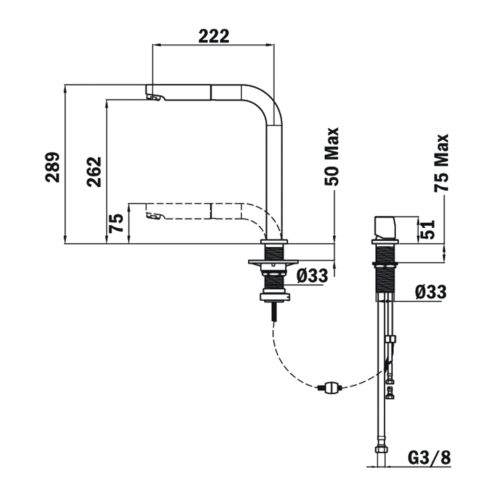 Височина в прибрано/извадено положение: 75/289 мм