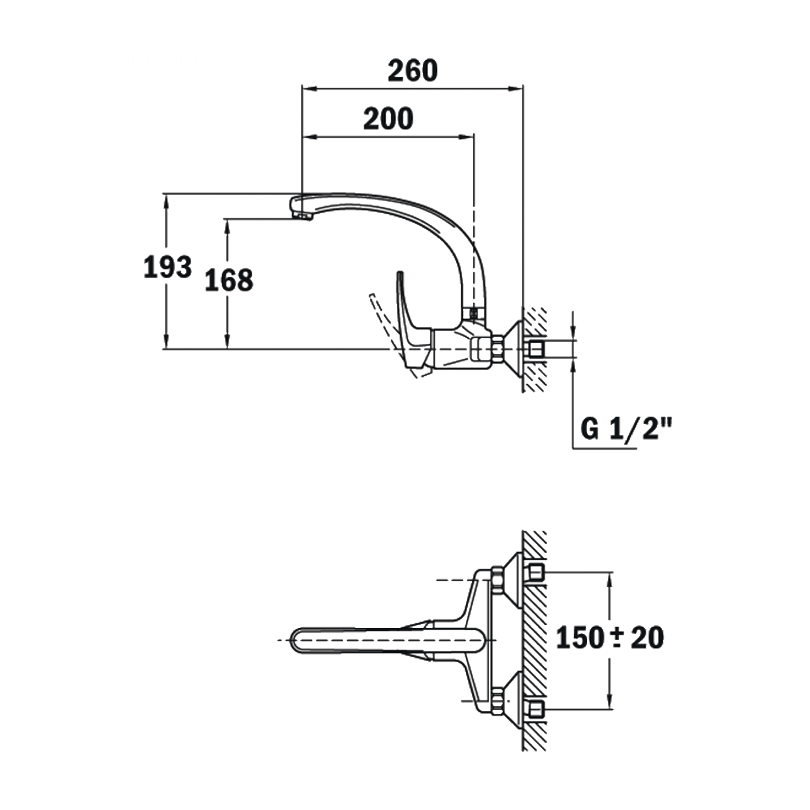Дължина на чучура/общо: 200/260 мм
